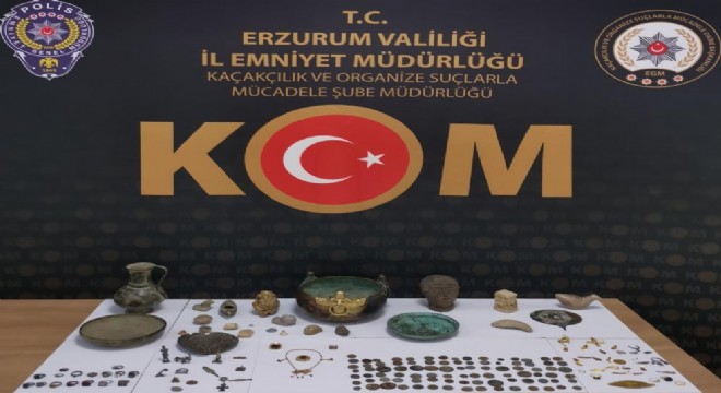 Erzurum Emniyet Müdürlüğü Kaçakçılık ve Organize Suçlarla Mücadele Şube Müdürlüğü (KOM) ve İstihbarat Şube Müdürlüğünce gerçekleştirilen operasyonda 182 adet tarihi eser ele geçirildi. Operasyon kapsamında 5 şüpheli gözaltına alındı.