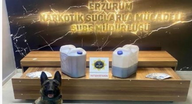 Erzurum Emniyet Müdürlüğü Narkotik Suçlarla Mücadele Şube Müdürlüğü ve İstihbarat Şube Müdürlüğü görevlilerince yapılan operasyonda 30 kilogram 50 gram likit metamfetamin ele geçirildi.