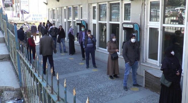 Erzurum’da polis PTT ve banka önlerinde işlem yapmak için bekleyen vatandaşları sosyal mesafe kurallarına uymaları konusunda uyardı.