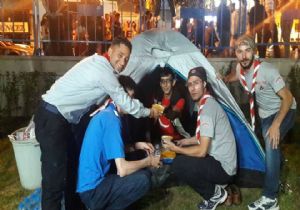Yaklaşık 150 izcinin katıldığı demokrasi nöbetinde çadır kuran izciler renkli görüntüler oluşturdu. Vatandaşlara bayrak dağıtan izciler çadırda vatandaşlar içinde ikramlarda bulundular.