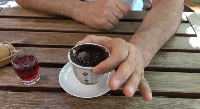 120 yıllık geçmişi olan kahve yanında nar şerbeti ile sunuluyor
