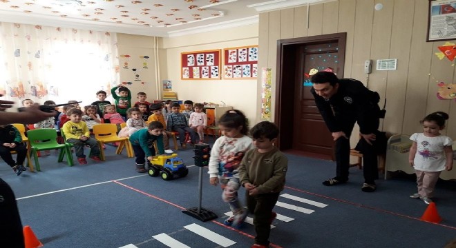 Erzurum Emniyet Müdürlüğü Trafik Şube ekiplerince okullarda, kreşlerde öğrencilere trafik kurallarını anlatıyor.
