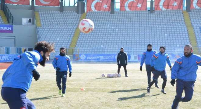 Spor Toto 2. Lig Beyaz Grup lideri Büyükşehir Belediye Erzurumspor, EYOF Organizasyonunun ardından 19 Şubat Pazar günü oynayacağı Ofspor maçının hazırlığını Kazım Karabekir Stadı’nda düz koşu 5-2 dar alan çalışması, çift kale maç yaparak tamamladı.
