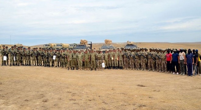 Azerbaycan’ın başkenti Bakü’de, Azerbaycan, Türkiye ve Gürcistan’ın katılımıyla düzenlenen “Eternity-2019” tatbikatı çölde yapılan görevlerle devam ediyor.