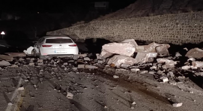 Dün gece yarısı meydana gelen olayda, 34 FM 6609 plakalı otomobil, İspir’den Erzurum istikametine seyir halindeyken İspir Maden Köprü mevkiinde meydana gelen ani heyelan sonucu yola düşen büyük kayalara çarptı. Kazada araç kullanılamaz hale gelirken, sürücünün hafif sıyrıklarla kazadan kurtulması olası bir faciayı önledi.