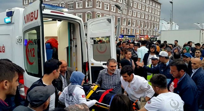 Erzurum’da özel halk otobüsünden indikten sonra ayağı tekerleğe sıkışan kadın yaralandı.