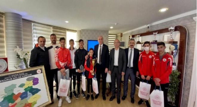 Türkiye Atletizm Federasyonu (TAF) tarafından Adana’da düzenlenen Kros Ligi Türkiye Şampiyonası’nda Yıldız erkekler kategorisinde şampiyon olan atletler ve antrenör Cahit Demir ödüllendirildi. Aynı zamanda Erzurum TOHM ve SEM sporcuları olan Karayazı Belediyespor Atletizm Takımı, Gençlik ve Spor İl Müdürlüğü’nü ziyaret etti. Erzurum Gençlik ve Spor İl Müdürü Birdal Öztürk ve diğer davetliler, Karayazılı şampiyon atletlere çeşitli hediyeler verdi.