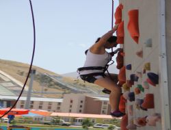ERZURUM (İHA) - Atatürk Üniversitesi Beden Eğitimi ve Spor Yüksekokulu'nun (BESYO) Dağcılık ve Doğa sporları özel yetenek sınavında öğrenciler üniversiteli olabilmek için duvara tırmandı.