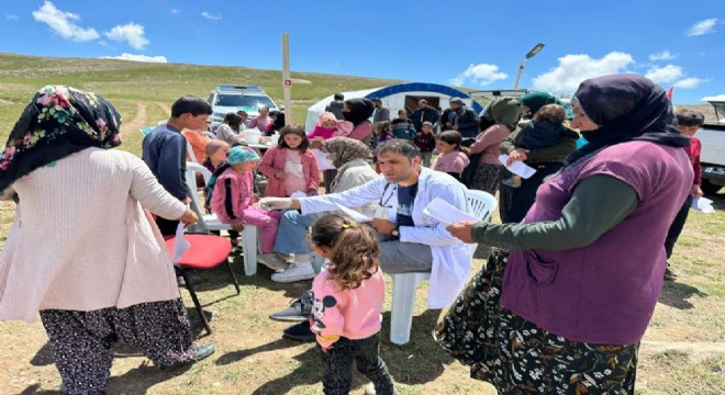 Erzurum’un kuzeyinde ve 3 bin rakımı bulan Dumlu Baba Yaylası’nda küçükbaş hayvan yetiştiriciliği yapan vatandaşlara sağlık desteği verildi.