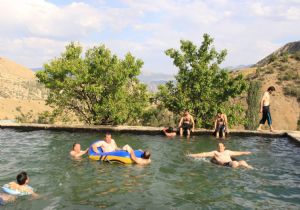 Yüzme havuzunun bulunmadığı Oltu ve çevresinde vatandaşlar, serinleme ve yüzme ihtiyaçlarını Oltu’ya bağlı Güllüce Köyündeki sulama havuzunda gideriyorlar.