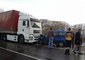 Kazada hafif ticari araçta bulunan sürücü Küçükbaş ve yeğeni Mustafa Küçükbaş (30) hafif şekilde yararlanırken, TIR sürücüsü kazayı ufak sıyrıklarla atlattı.