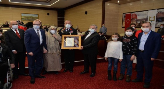 Erzurum’da düzenlenen törende 4 şehit ve 1 gaziye Devlet Övünç Madalya ve Beratları verildi.