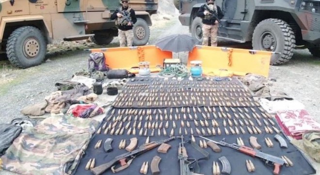 Hakkari’nin Kazan Vadisi’nde yürütülen operasyon kapsamında teröristlere ait çok sayıda silah ve mühimmat ele geçirildi.