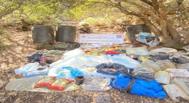 Adıyaman'da PKK'lı terör örgütüne ait yaşam malzemeleri toprağa gömülü halde bulundu.