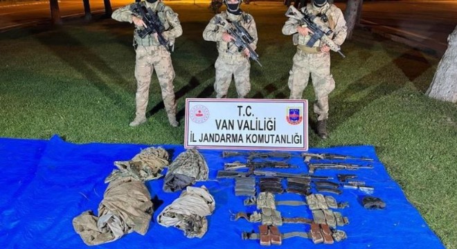EREN ABLUKA-35 operasyonları çerçevesinde Van İl Jandarma Komutanlığınca yürütülen kırsal alan faaliyetlerinde arazi araması sonucu çok sayıda silah, fişek ve örgütsel doküman ele geçirildi.