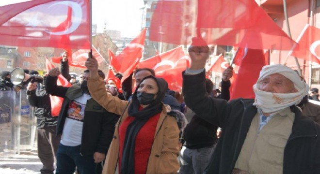 HDP binası önünde ellerinde pankart, döviz ve çocuklarının fotoğrafları ile eylem yapan aileler, 'Kahrolsun HDP, PKK’, ‘Türk, Kürt kardeştir HDP kalleştir’ şeklinde slogan attılar.