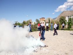 Sivil savunma çalışmaları kapsamında gerçekleştiren yangın tatbikatında hastane personeli de hazır bulundu.