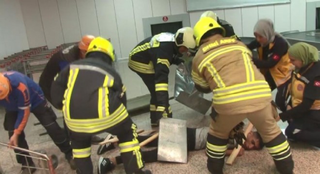 Erzurum Havalimanı'nda yapılan deprem tatbikatı gerçeğini aratmadı.