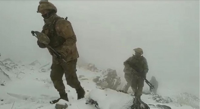 Şırnak’ın Cudi Dağında 13 Temmuzda 58 komando timi, 12 jandarma özel harekat timi, 12 polis özel harekat timi, 18 korucu timi ve 2 karma timin katılımıyla başlatılan Yıldırım-1 Cudi operasyon ile bölge teröristlerden temizlendi. 2 bin 17 rakımlı Cudi Dağında, zorlu coğrafya ve çetin kış şartlarına rağmen hız kesmeden vatan nöbeti sürüyor. Terörist ve patlayıcı maddelerden temizlenen bölgelerde kurulan üs bölgelerinde Mehmetçik, elleri tetikte vatan savunmasına devam ediyor. Şırnak Çakırsöğüt 1. Jandarma Komando Tugay Komutanlığına bağlı birlikler bir yandan teröristlerle, bir taraftan da zorlu hava şartları ile mücadele ediyor. Bölgede çetin geçen kış aylarında kar kalınlığı yer yer 2 metreyi bulurken, hava sıcaklığı ise eksi 20 derecelere kadar düşüyor. Üs bölgesinde gece gündüz görev yapan Mehmetçikler, zor şartlara rağmen elleri tetikte, vatan savunması yapıyor.