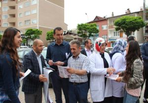 Oltu Toplum Sağlığı Merkezi personeli kalp krizine dikkat çekmek için, Oltu caddelerine afiş asarak, el broşürü dağıttılar.