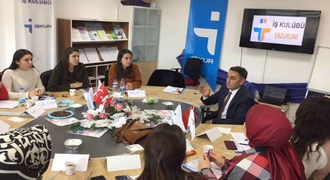 “Çalışmak İsteyen Herkese Göre Bir İş” olduğu düşüncesinden yola çıkılarak Erzurum Çalışma ve İş Kurumu İl Müdürlüğü’nde 2018 Kasım ayından buyana faaliyette olan İş Kulübün de eğitimler devam ediyor