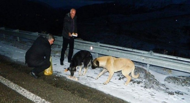Uzundere ilçesinde gönüllü gençler ve esnaf tarafından soğuk havalarda ...