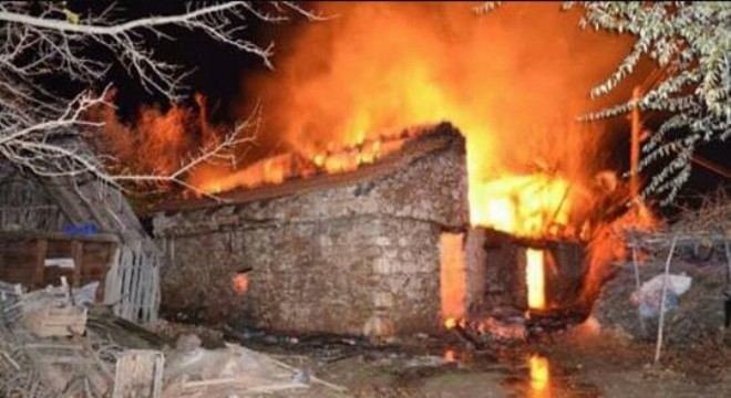 İspir Halilpaşa da 3 ev ve 4 ahır kül oldu