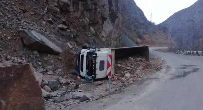İspir ilçesinde taş yüklü kamyon devrildi. Kazada 1 kişi hayatını kaybetti.