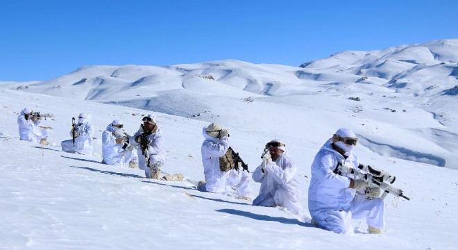 Van İl Jandarma Komutanlığınca Hakkari-Van-Şırnak üçgeninde yer alan Çalyan bölgesinde 200 personelden oluşan 14 timin katılımıyla yürütülen operasyonda, Jandarma Komando Timleri eksi 20 derecede adım adım terörist arıyor.
