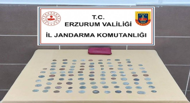 Erzurum İl Jandarma Komutanlığı Kaçakçılıkla Mücadele ve Organize Suçlarla Mücadele Şube Müdürlüğü ile Aşkale İlçe Jandarma Komutanlığı tarafından gerçekleştirilen operasyonla Bizans dönemine ait 104 adet sikke ele geçirildi.