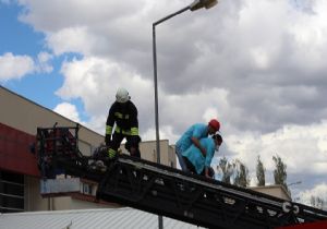 Temsili yangına Oltu Devlet Hastanesi personeli gerçeğini aratmayacak şekilde ilk müdahaleleri yaptı