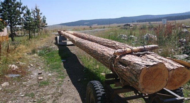 Şenkaya ilçesinde 18 metre boyun da 2 adet kaçak kesilmiş Sarıçam tomruğu ele geçirildi.