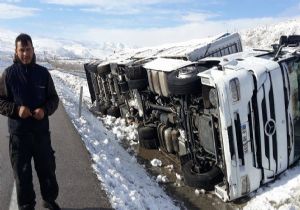 Sürücü Yasin A. kazadan kısa bir süre önce ilçe merkezinde zincir taktığını belirterek, “Şiddetli kar ve tipi görüş mesafesini sıfıra düşürdü yavaşladım ama araç kayınca iki yol ortasındaki kanala düştüm” dedi.