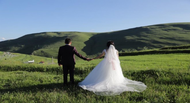 Ardahan’da, Gazi Mustafa Kemal Atatürk'ün silueti, Karadağ sırtlarında görülmeye başlandı. Düğünlerini yapan Akalın çifti, Atatürk'ün siluetini izleyerek hatıra fotoğrafı çektirdi.