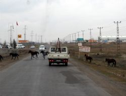 KARS (İHA) - Kars ve çevresinde başıboş bırakılan atlar özellikle yola aniden çıkarak kazaya davetiye çıkarıyor Kars Paşaçayırı Kümbetli yolunda başıboş bırakılan hayvanlar özellikle yola aniden çıkarak kazaya davetiye çıkarıyor.