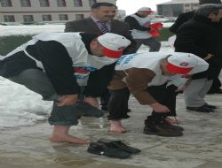 Atatürk Üniversitesi kampüsünde bulunan Yakutiye Araştırma Hastanesi önünde toplanan Türk Sağlık- Sen üyeleri, karda eylem yaptı. Ayakkabılarını çıkararak çıplak ayakla kar üzerinde basın açıklaması yapan sendika üyeleri, sağlık çalışanlarının ek ödemelerinde haksızlık yapıldığını öne sürdü. Sendika üyeleri adına basın açıklaması yapan Erzurum Türk Sağlık-Sen Üniversite Şube Başkanı Bülent Çakmur, “Hak arama yolunda üşüme yoktur. Sağlık çalışanlarının ek ödemelerinde uğradıkları bir diğer haksızlıkta gelir vergisi alınmasıdır. Kamuda hiç kimsenin ek ödemesinden gelir vergisi alınmazken sağlık çalışanlarının ek ödemelerinden gelir vergisi alınmaktadır. Bu haksızlığın ortadan kaldırılması gereklidir.