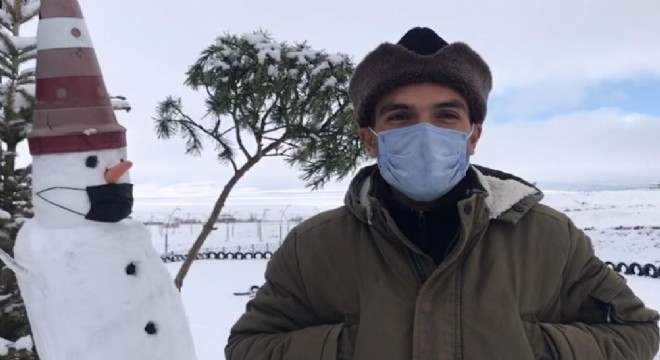 Dün akşam saatlerinden itibaren etkili olan kar yağışı Kars’ın Sarıkamış ilçesinde etkili olmaya devam ediyor. Sarıkamış Kayak Merkezinde kalan doğaseverler dev kardan adam yaptılar. Kardan adama maske takan doğaseverlerden İranlı Hamed Charkhchi, “Son üç günde Sarıkamış’ta kar etkili oldu. Pandemi döneminde büyük bir mücadele veriyoruz. Kardan adam yaptık. Kardan adamımıza maske taktık. Onlarda tedbir aldılar. Sezonun açılışını yapmaya hazırlanıyoruz” dedi.