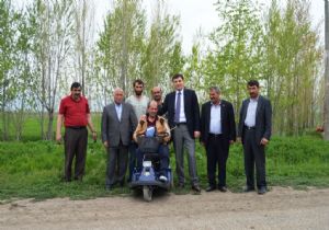 Sarıyayla Mahallesi’nde yaşayan sol ayak belden aşağısı kısmi felçli olan İbrahim Hakkı Fırat’ın talebini değerlendiren Öz, akülü arabayı teslim etti.