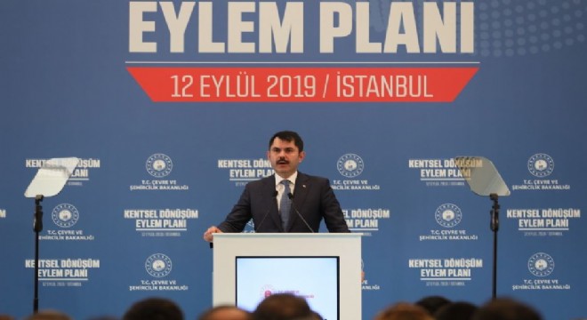 Çevre ve Şehircilik Bakanı Murat Kurum, 'Kentsel Dönüşüm Eylem Planını' kamuoyuna açıkladı. Toplantıda 8 maddelik Kentsel Dönüşüm Eylem Planını açıklayan Kurum, “Ocak ayında, Antalya'da yaptığımız '2023'e Doğru Çevre ve Şehirciliğin Geleceği İstişare Toplantısı'nın, en önemli gündemi Kentsel Dönüşüm oldu. Ardından, 'Kentsel Dönüşümde Yeni Dönem' toplantımızda, strateji belgemizi açıkladık. Son olarak da her iki toplantının ve saha çalışmalarımızın sonuçlarına dair mevzuat değişikliklerimizi gerçekleştirdik” dedi.