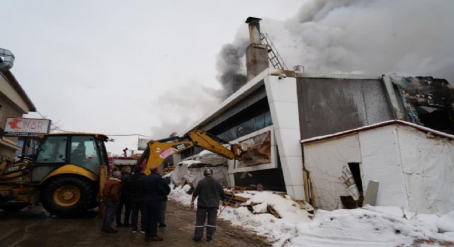 Erzurum’da Sanayi sitesinde çıkan yangına müdahale devam ederken içeride ...