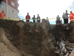 Palandöken ilçesine bağlı Kayakyolu Küme Evler Mahallesi'nde meydana gelen göçükte 6 katlı apartmanın istinat duvarı çöktü.