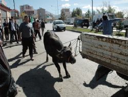 ERZURUM (İHA) - Erzurum’da hayvan pazarında kamyonete yüklenirken kaçan kurbanlık, sahibine zor anlar yaşattı.