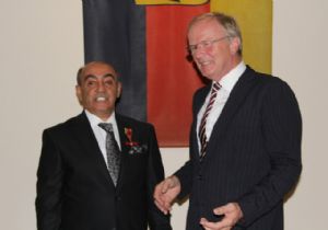 Almanya'nın Ankara Büyükelçisi Eberhard Pohl, Almanya'nın Erzurum Fahri Konsolosu Yılmaz Kuşkay'a liyakat nişanı taktı.