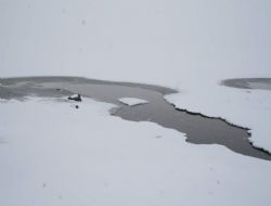 Kuşların göç yolunda olan Kuyucuk Gölü’nün donması ile birlikte burada yaşayan kuşlar da Güney’e göç etti. Boydan boya beyaza bürünen ve üzeri karla kaplanan Kuyucuk Gölü’nde sadece kuşların yuva yaptığı adaların sazlıkları görünüyor.