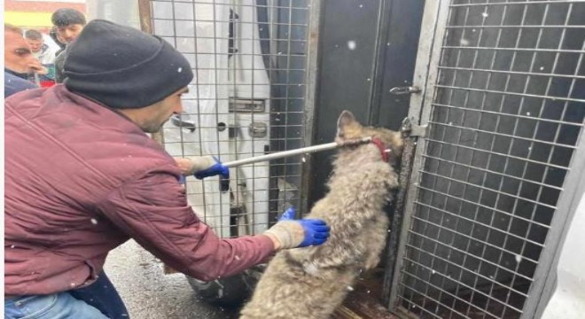 Bingöl'de bir lastikçiye giren ve kısa süreli paniğe neden olan kurt, belediye ekiplerince yakalandı.