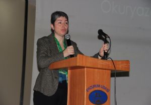 Erzurum Lisesi Salonunda düzenlenen konferansa İstanbul Üniversitesi İletişim Fakültesi Öğretim üyesi Prof. Dr. Nilüfer Pembecioğlu, konuşmacı olarak katıldı.