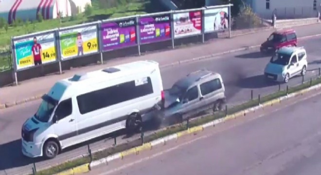 Makas atan sürücü önündeki minibüse çarptı