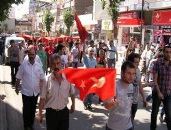 yürüyüşe dahil oldu. Polisin geniş güvenlim önlemi aldığı yürüyüşte, terör örgütü PKK ve terörist başı aleyhine sloganlar atıldı. "Şehitler ölmez vatan bölünmez", "Hepimiz askeriz PKK'ya yeteriz" sloganları atan ve sık sık tekbir getiren grup, hep bir ağızdan 10. Yıl Marşı'nı okudu. Yürüyüşün ardından kalabalık dağıldı.