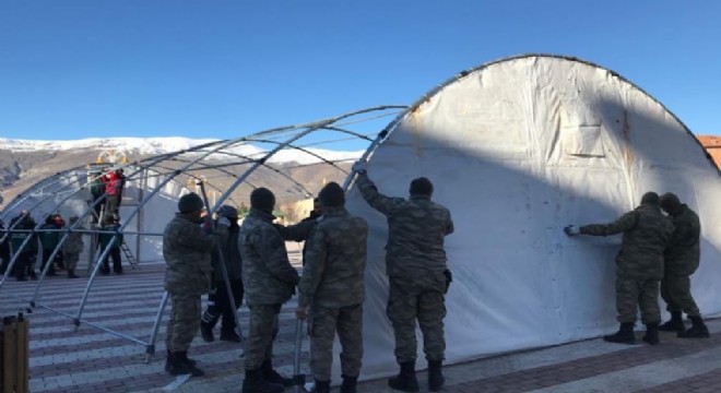 Milli Savunma Bakanlığı, Mehmetçik’in Elazığ’ın Doğanyol ve Kale ilçelerinde kurduğu çadırların görüntülerini paylaştı.