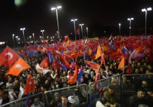 Alanı dolduran kalabalığa seslenen Başbakan Erdoğan, “Türkiye farklı bir dönemi yaşıyor. 10 yıldır bizden böyle b ir sıçramayı beklemeyenler bizim böyle bir noktaya geleceğimizi tahmin etmeyenler oyunları bozulunca maalesef çok farklı yöntemlere başvurdular. Çünkü bu olay ulusal bazda bir olay değildir. Bu olayın uluslararası boyutu vardır. Ama ulusal bazda da ne yazık ki bu işin taşeronları vardır. Biz isterdik ki aynı istikamete yönelen insanlar, birbirine vurmasın. Biz el ele vermeye mecburuz, omuz omuz vermeye mecburuz. Zira biz neyin kavgasını yapıyoruz? Bizim tek mücadelemiz var, önce insan, sonra devlet. Biz bunu başardık. Devleti önceleyen değil, insanı önceleyen bir anlayışı getirdik. Şişte şu anda bu zihniyete gönül veren İstanbul bambaşka bir aşka, heyecanla burada olağanüstü buluşmayı gerçekleştirdi” dedi.